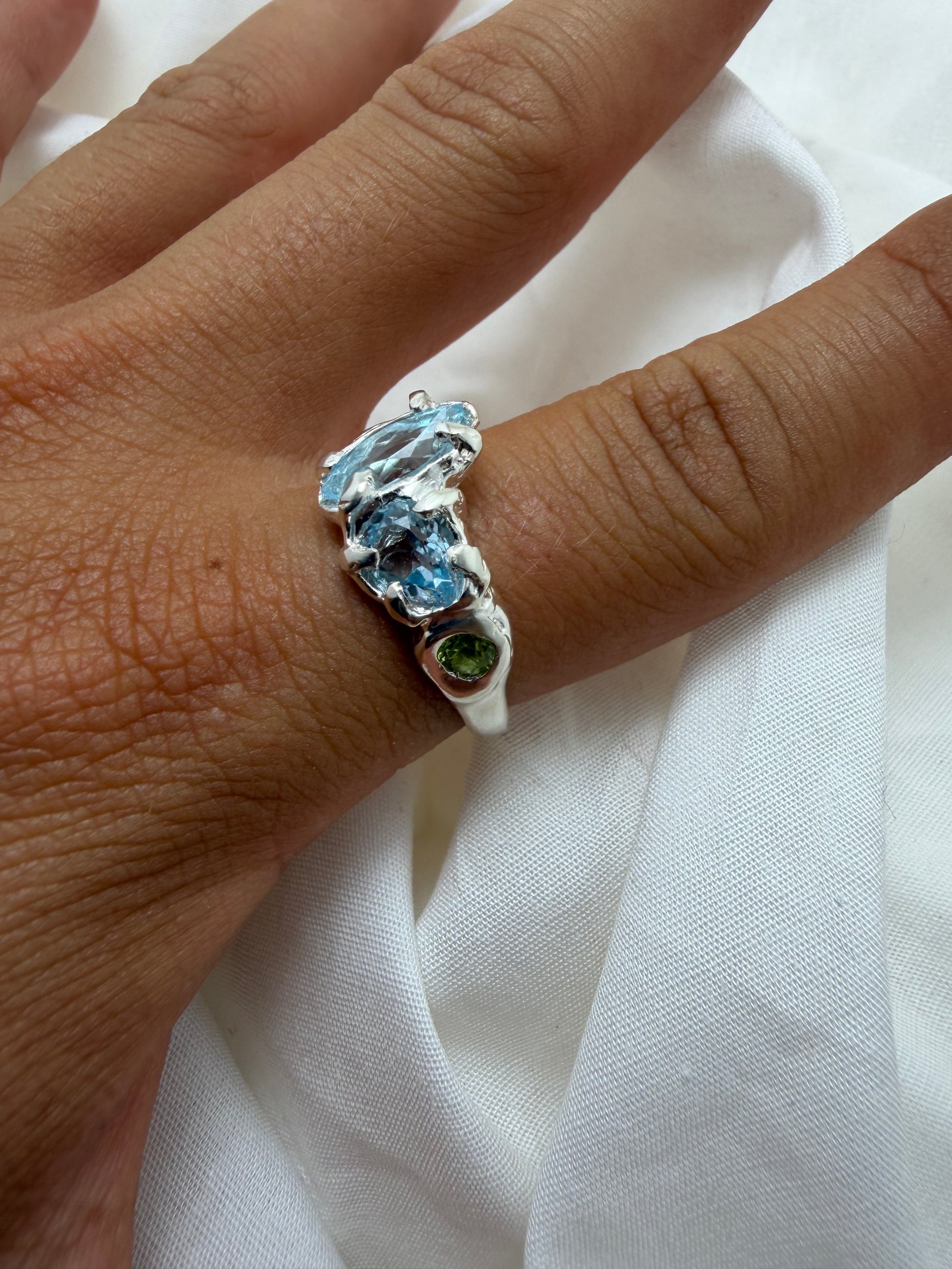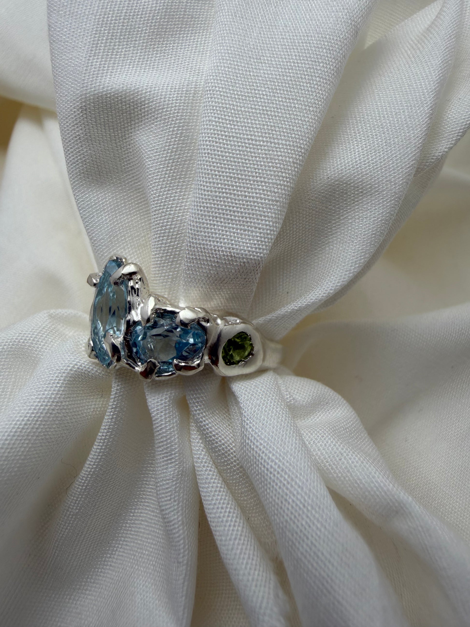 hand crafted using 925 Sterling Silver and natural Topaz and peridot.
