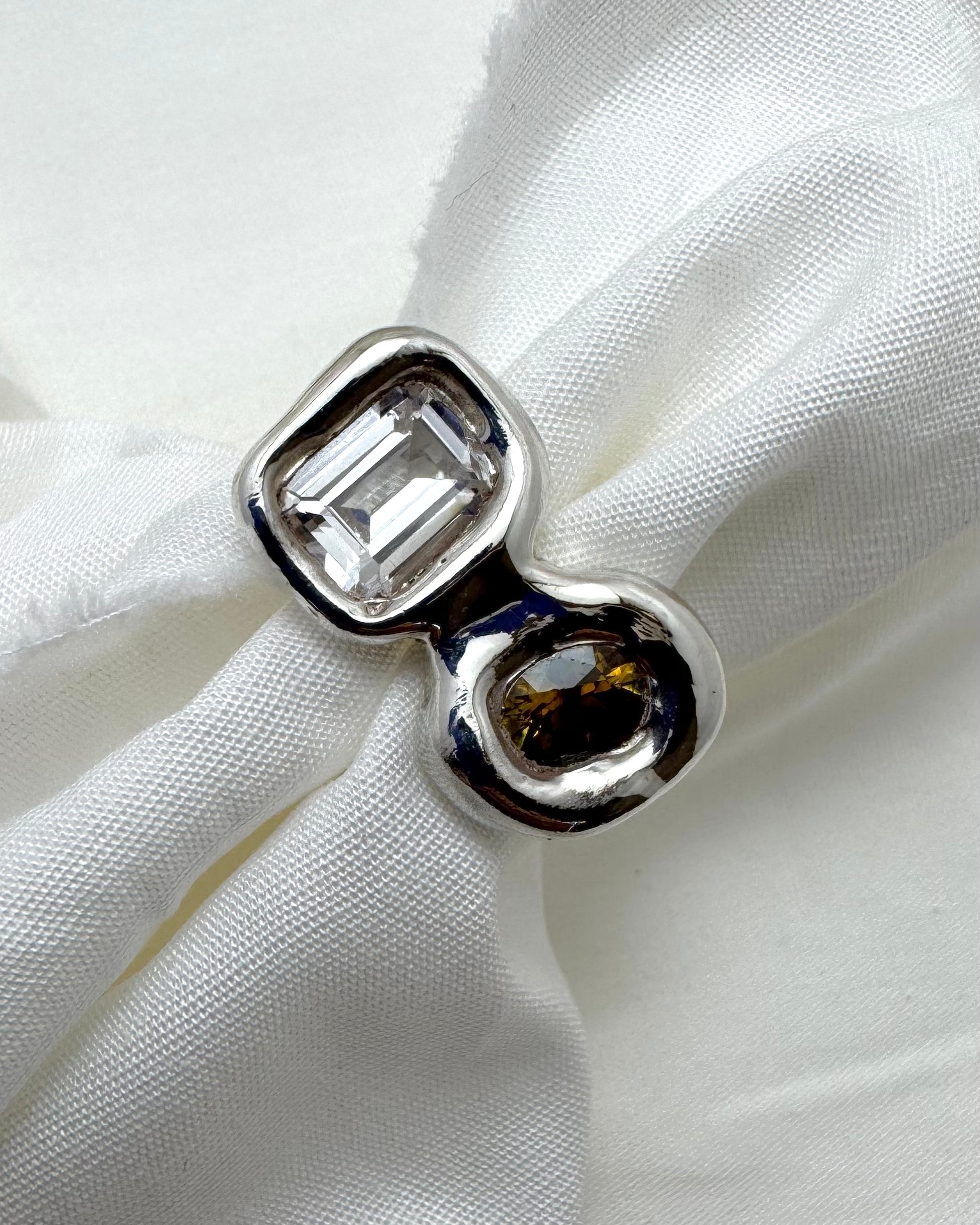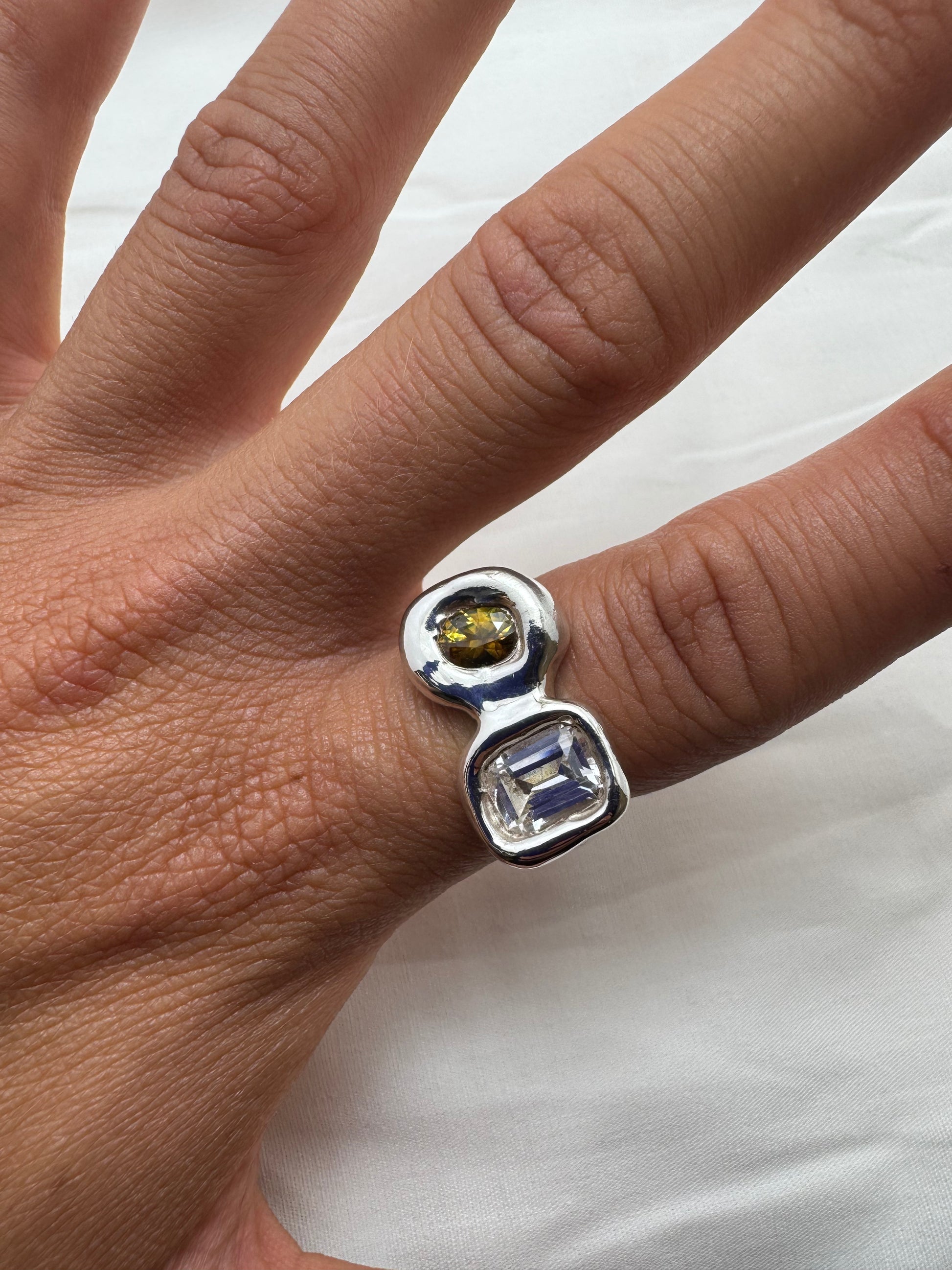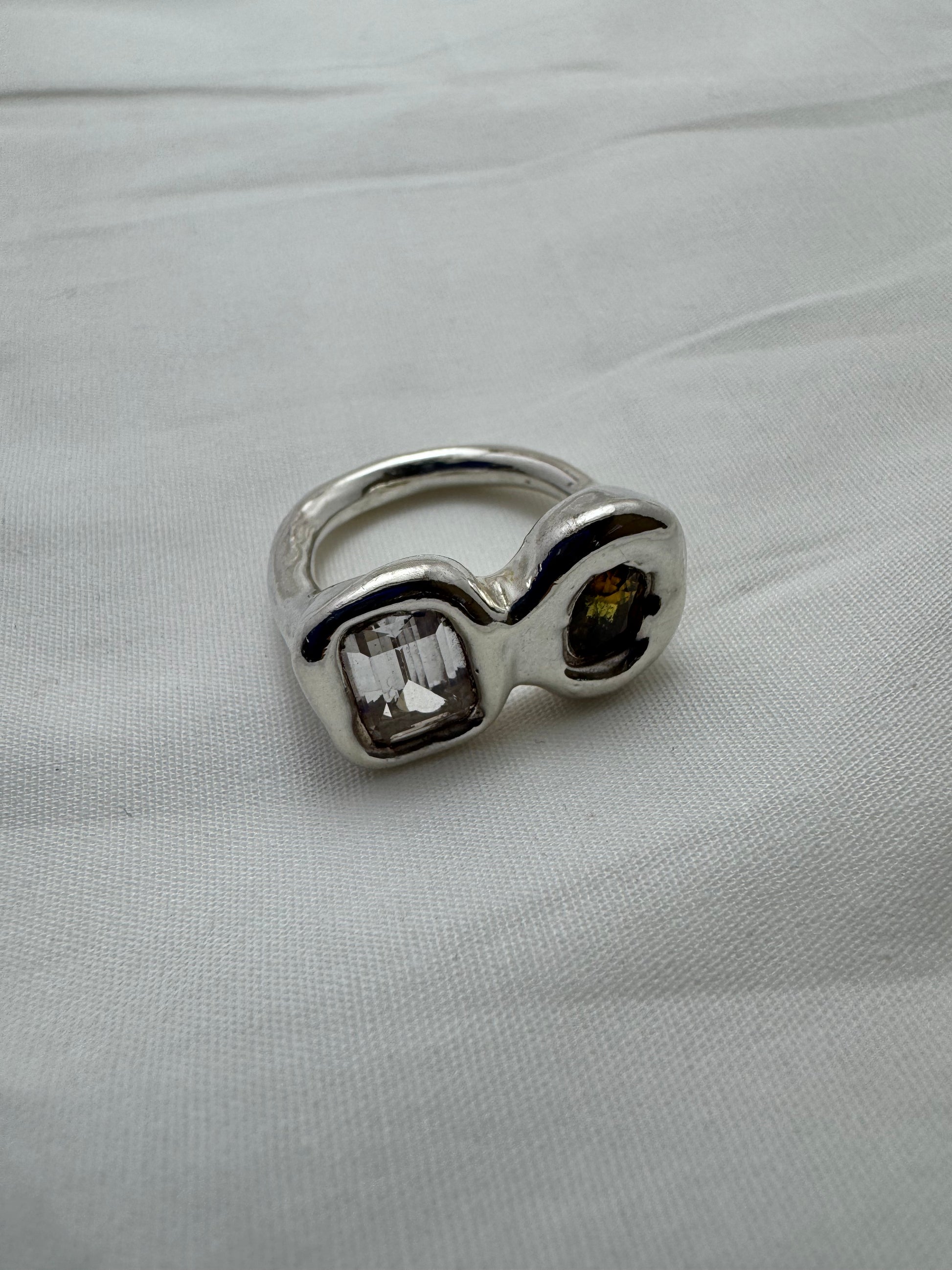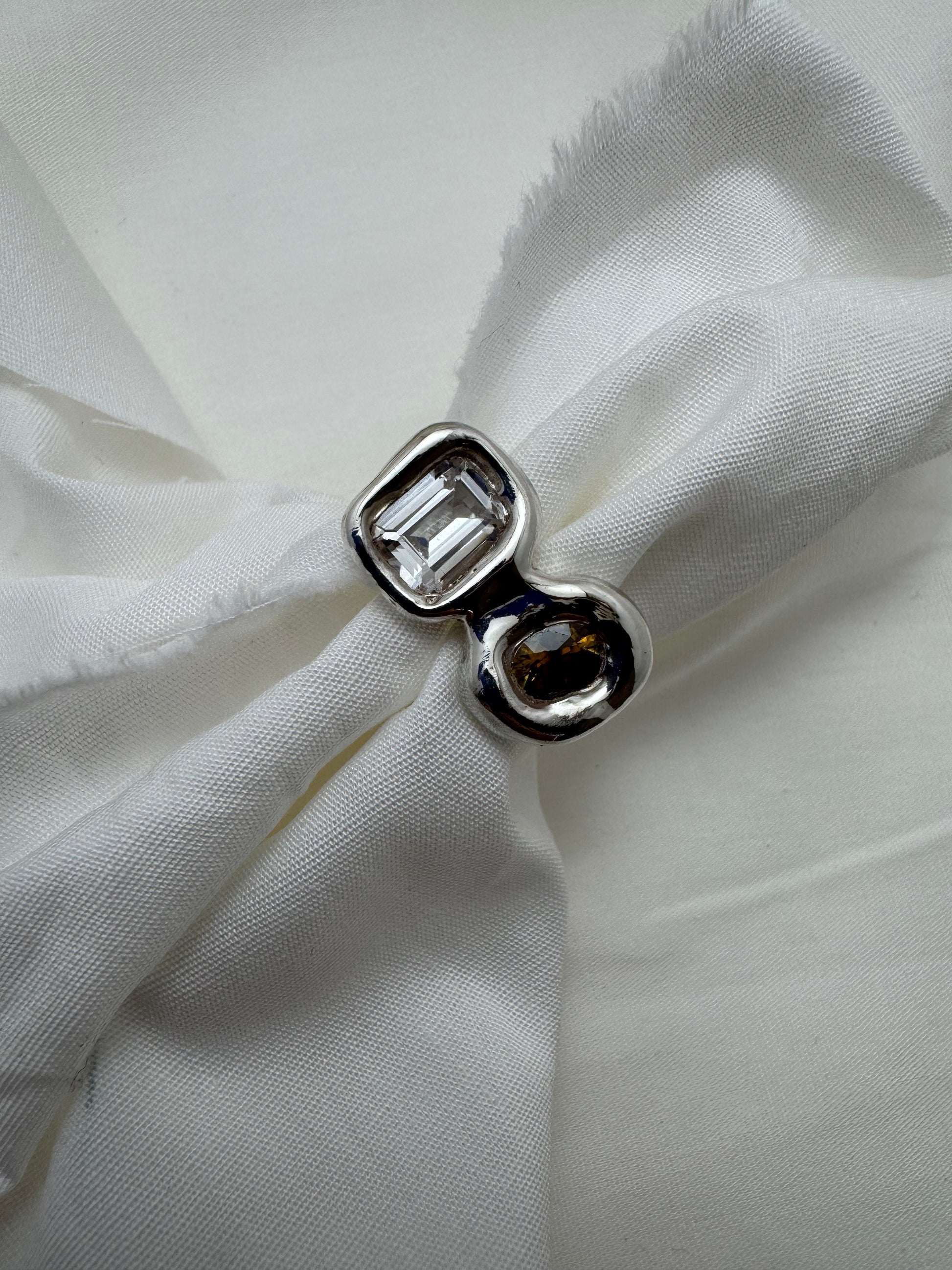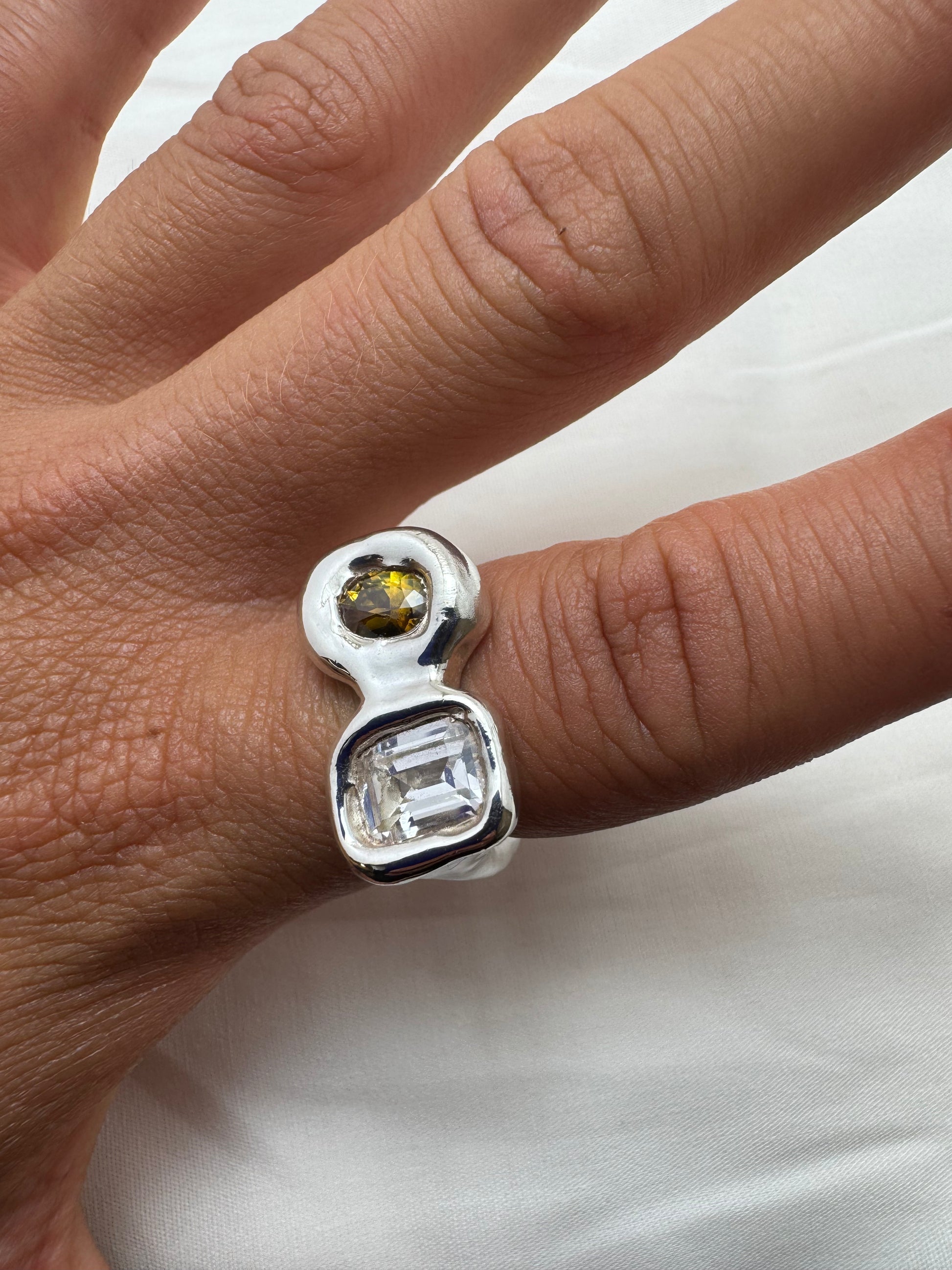 ‘Ready to ship’ is a collection of one-off pieces already sized and ready to wear. In this collection I explore different forms of metals and gemstones, creating something new every time.