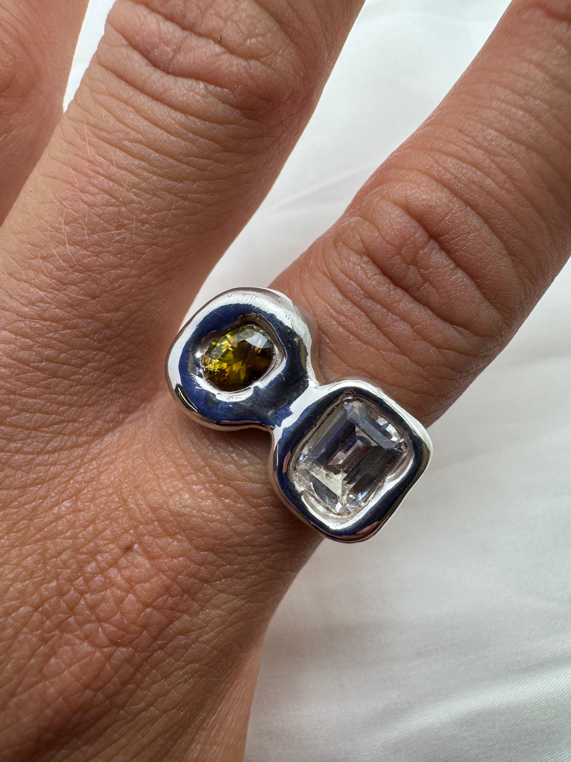 Harper is a one off, hand crafted using 925 sterling silver with white sapphire and natural parti sapphire.