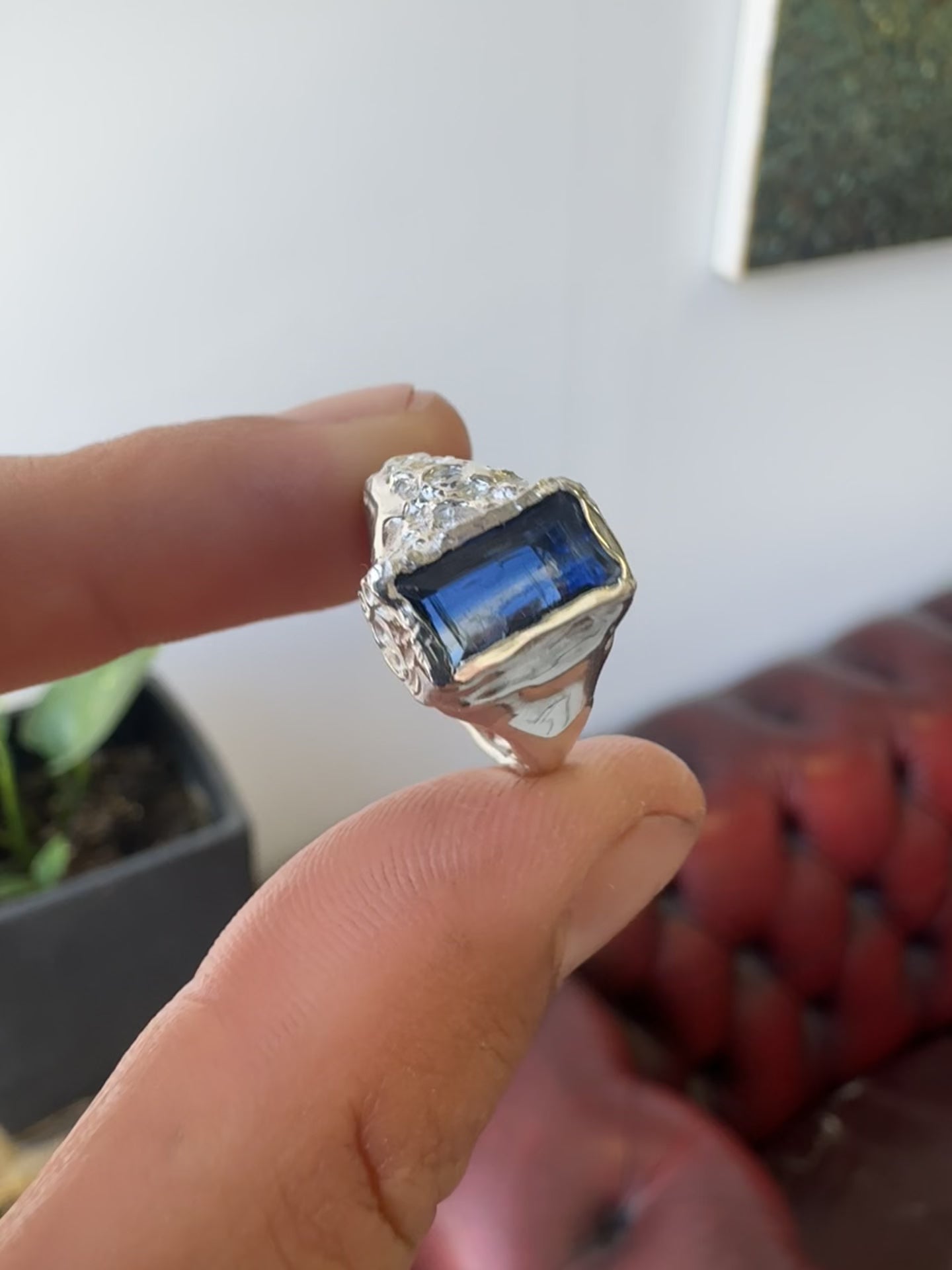 Hidden sparks is a one off, hand crafted using 925 sterling silver with natural kyanite and 4 x hidden moissanite.