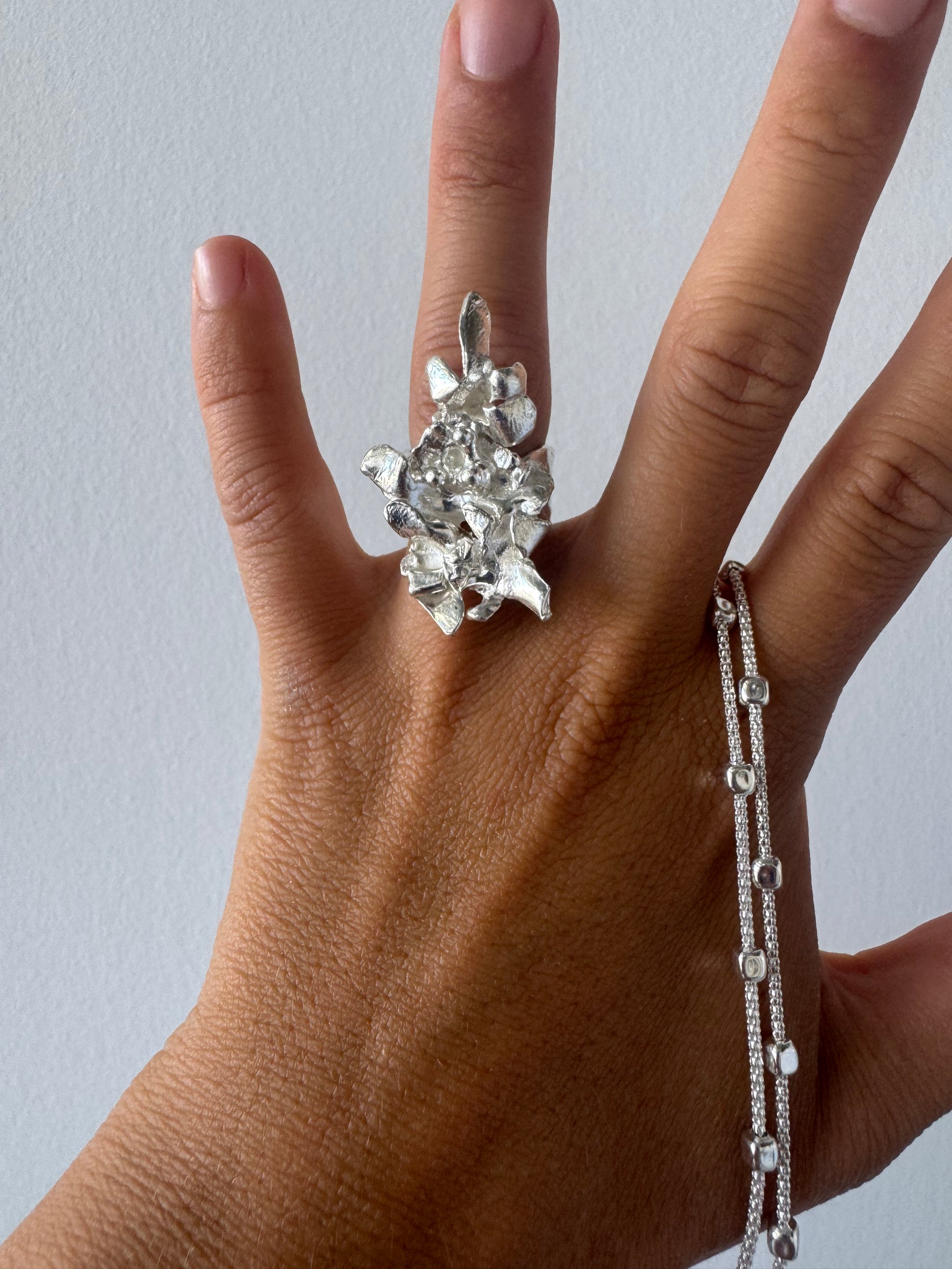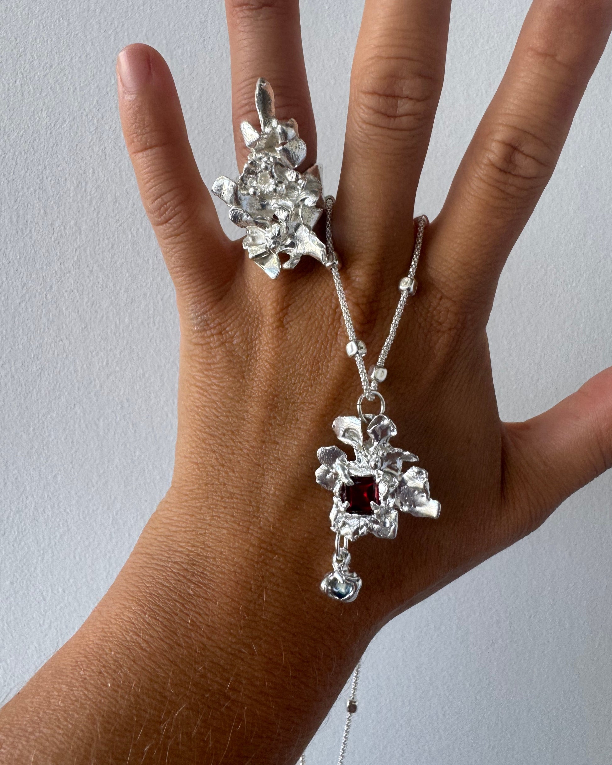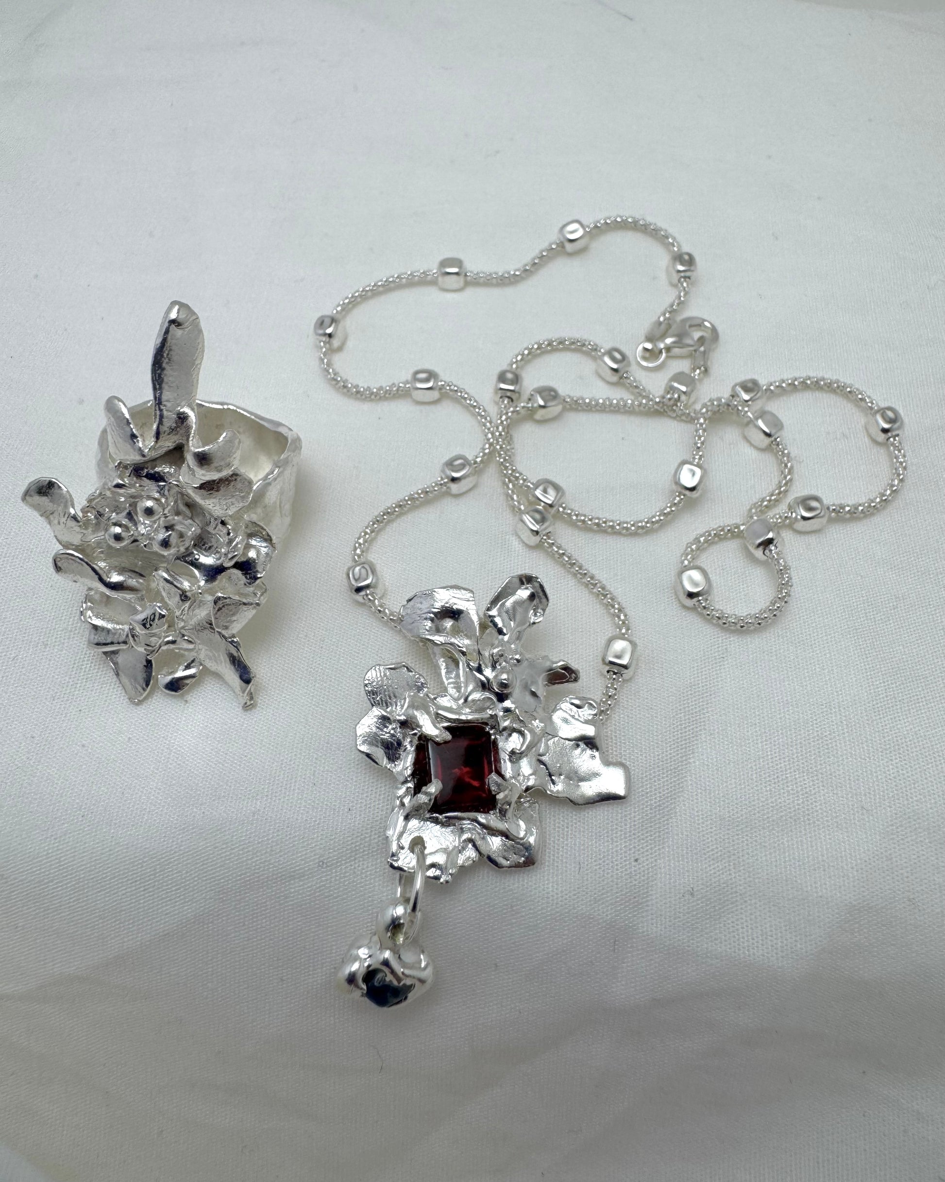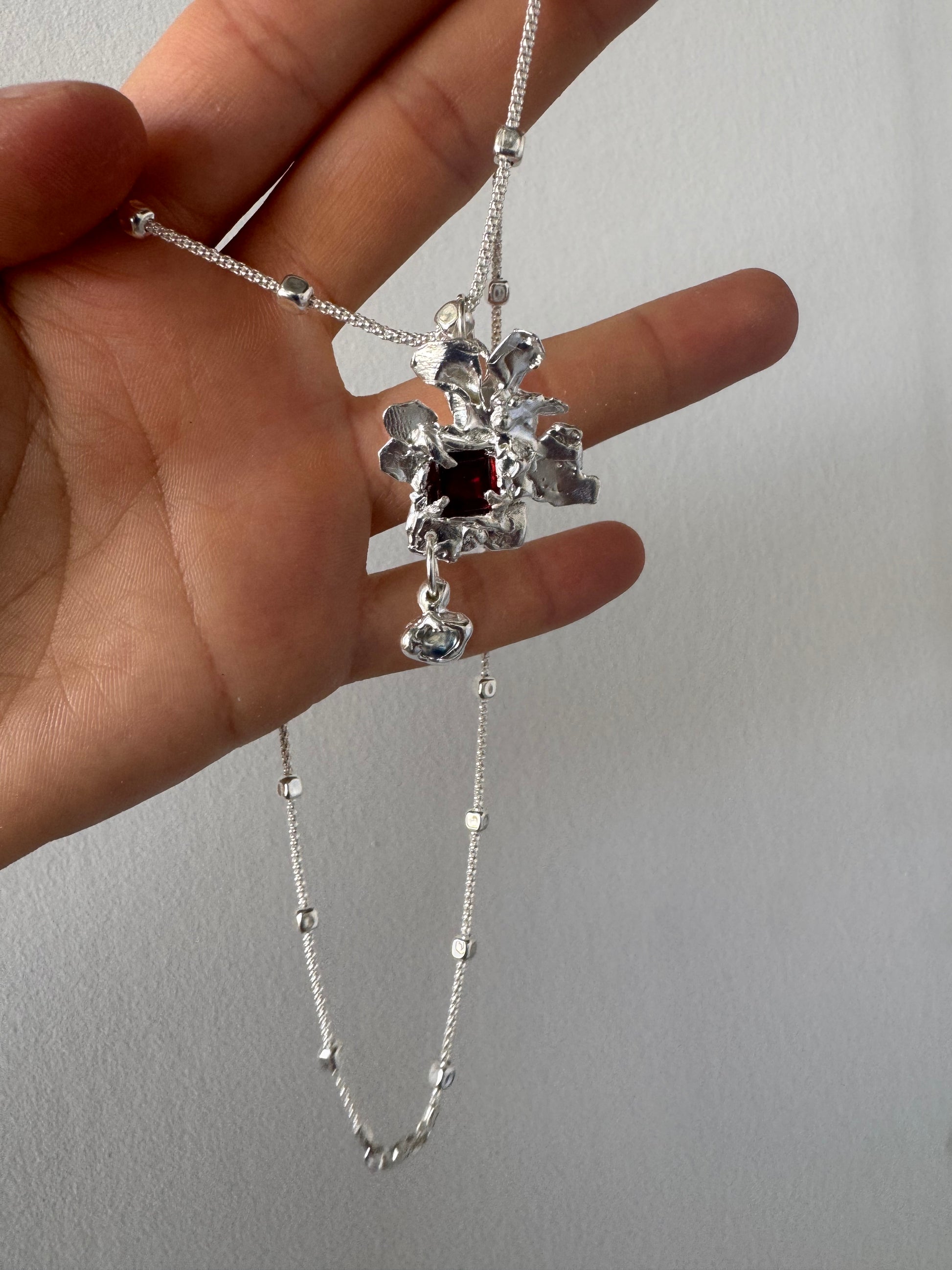 necklace - 45cm / sterling silver with garnet and raw sapphire