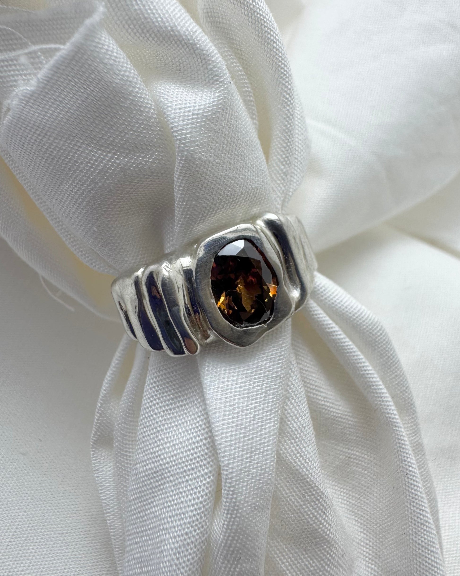 Riverbank is hand crafted using 925 sterling with brown Cz.