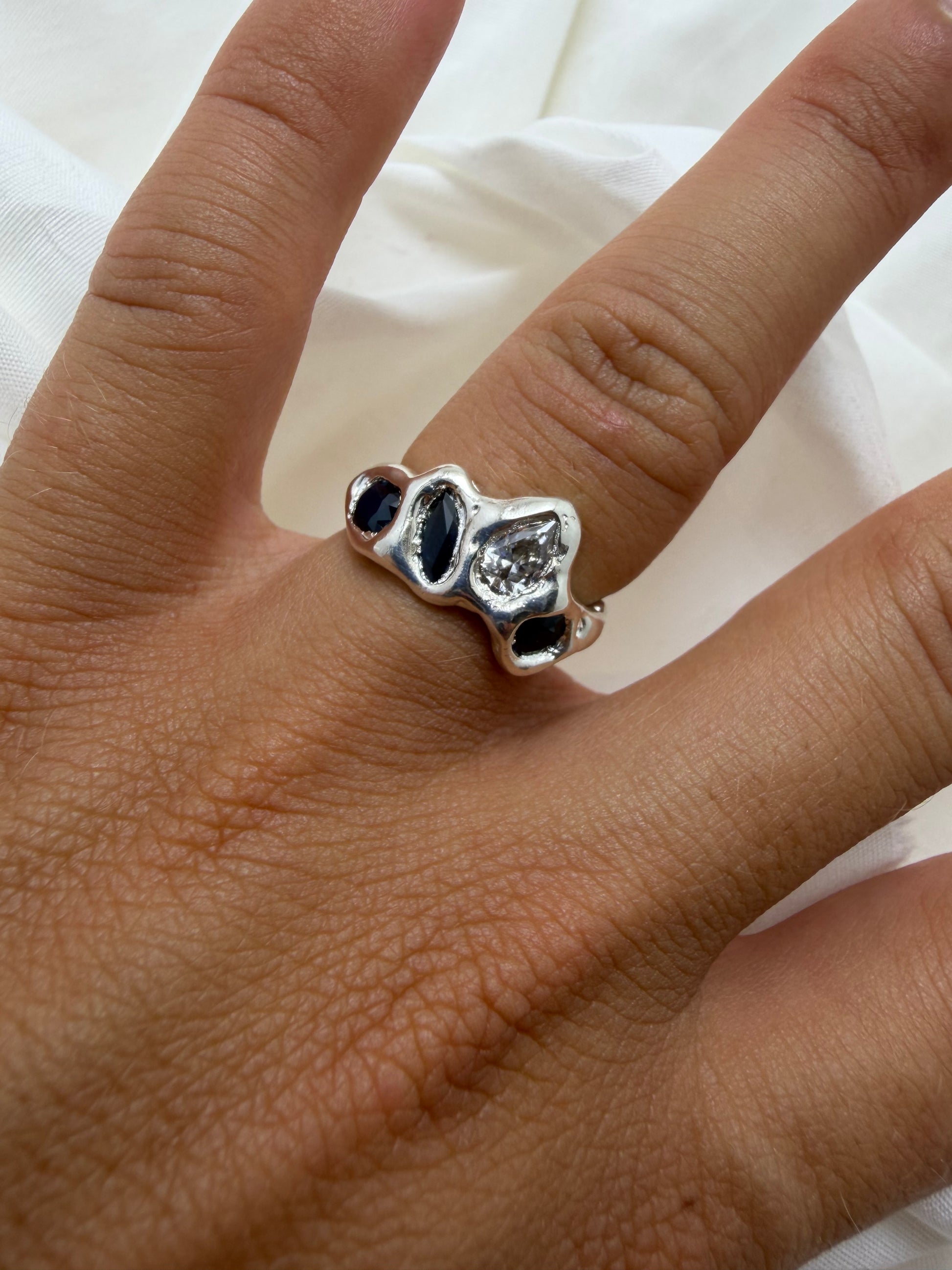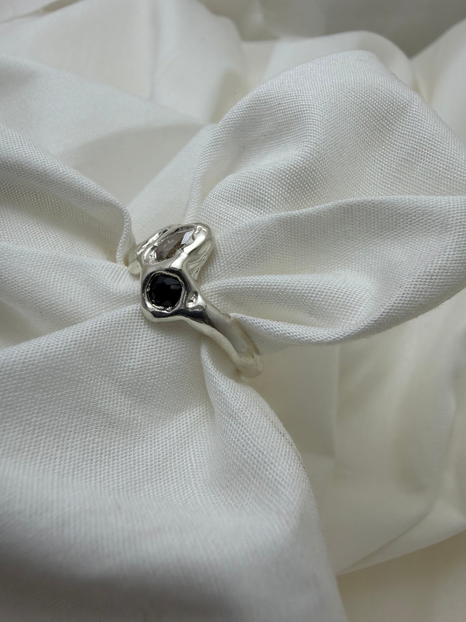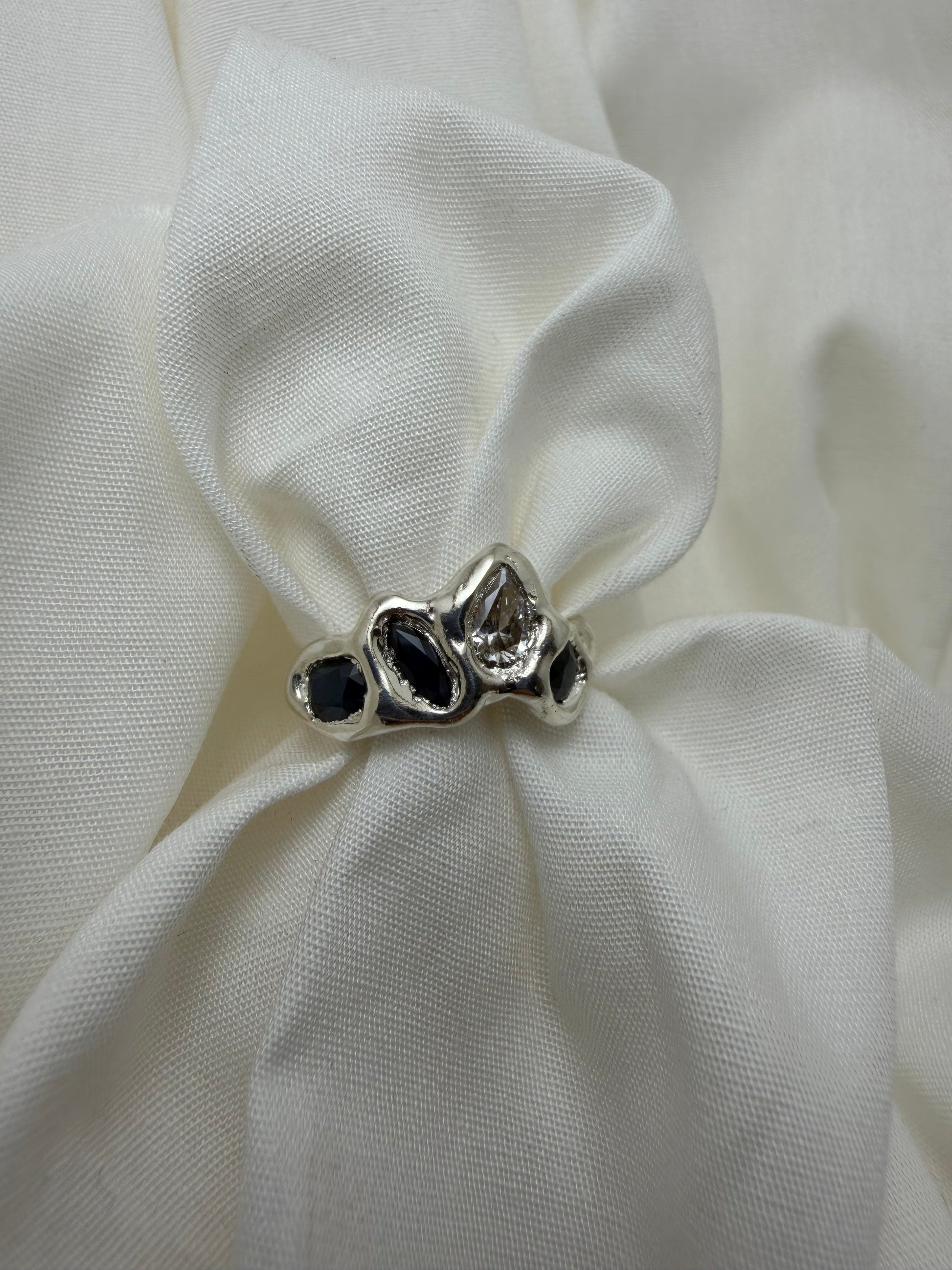 Ready to ship’ is a collection of one-off pieces already sized and ready to wear. In this collection I explore different forms of metals and gemstones, creating something new every time.