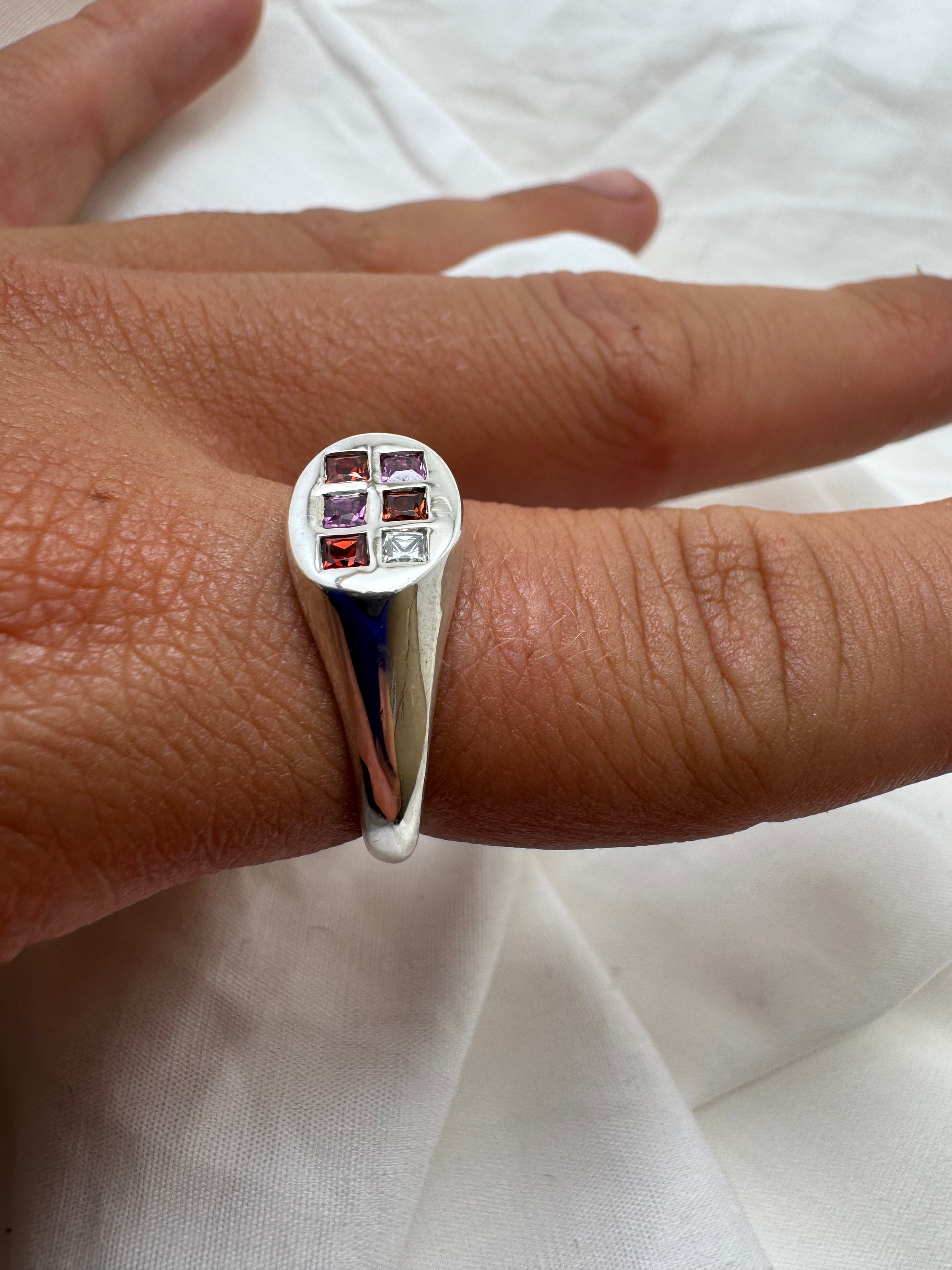‘Ready to ship’ is a collection of one-off pieces already sized and ready to wear. In this collection I explore different forms of metals and gemstones, creating something new every time.