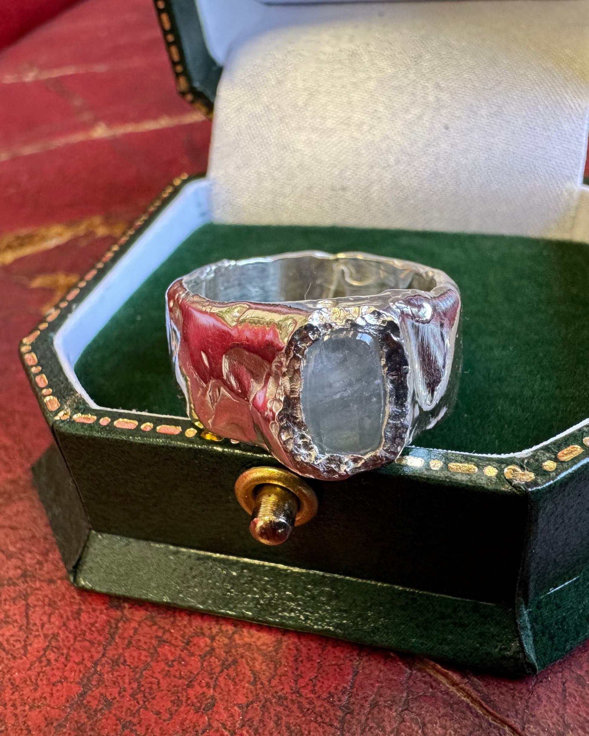 ‘Ready to ship’ is a collection of one-off pieces already sized and ready to wear. In this collection I explore different forms of metals and gemstones, creating something new every time.